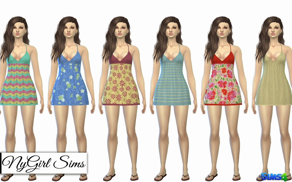 Flared Halter Cocktail Dress had a missing LOD (which is only noticable when sim graphic setting is on high or lower). File has been fixed and updated as of June 7th. Please re-download. Sorry for any inconvience