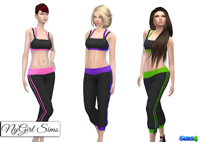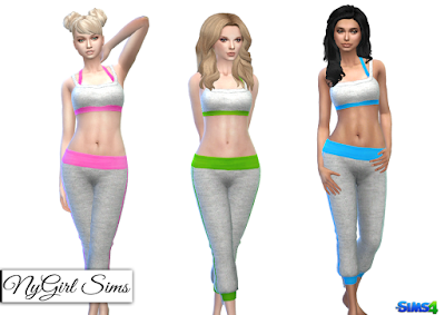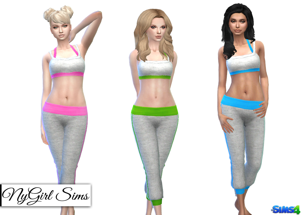 An athletic/yoga set with hatchi knit cropped pants and tank top. Made with a mixture of TS4 textures as well as fabric textures. Comes in 18 presets. 6 colors on white, black and grey knit material. Both tank top and sweatpants included in one zip file.