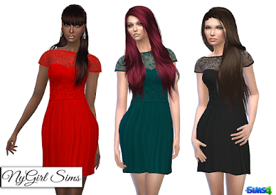 A sweetheart neckline dress with an embroidered lace top overlay and open drop back. Made from a mixture of TS3 and TS4 textures as well as real lace textures. Comes in 33 colors.