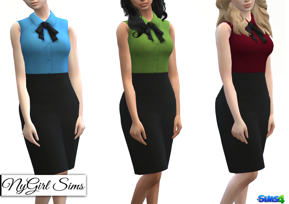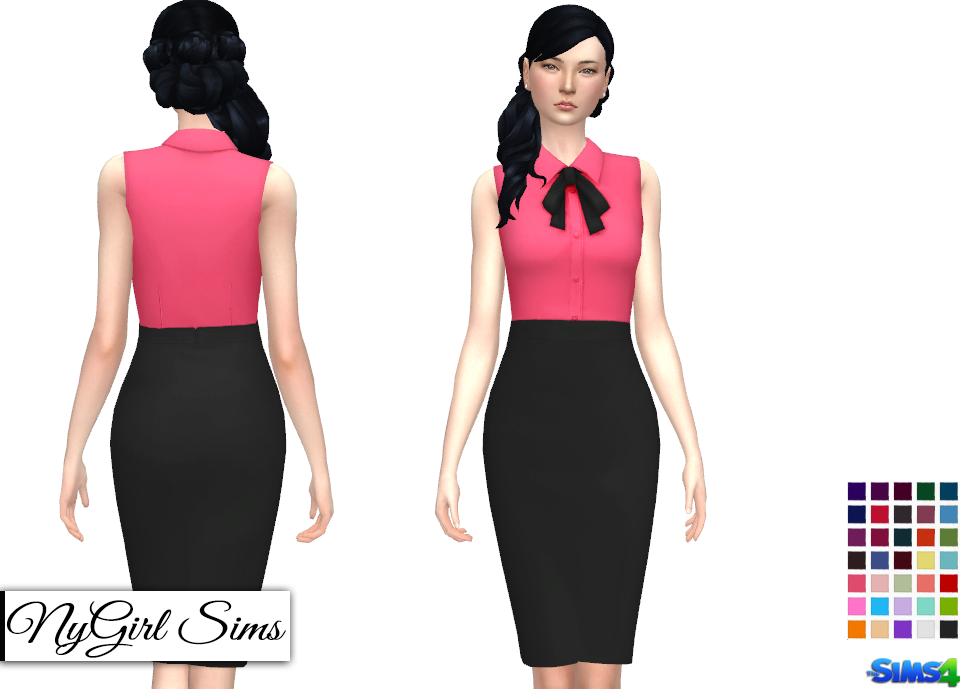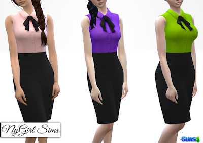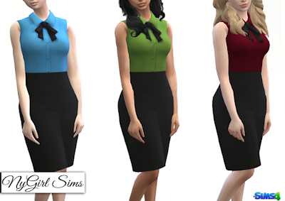 I was looking for some additional outfits to use for hostesses and waitresses for the Dine Out pack and whipped this up real quick. Dress has a black high waist skirt and bow with colored shirt. Made from a mixture of TS4 textures. Mesh edit by me. Comes in 35 colors. Enabled for all genders.