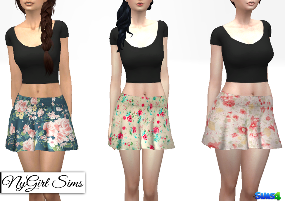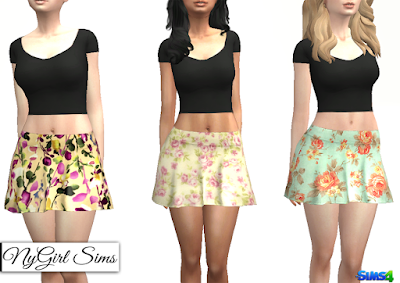 A short flare style skirt with floral prints. Made from a mixture of TS4 textures. Mesh edit by me. Comes in 25 presets. Enabled for all genders.